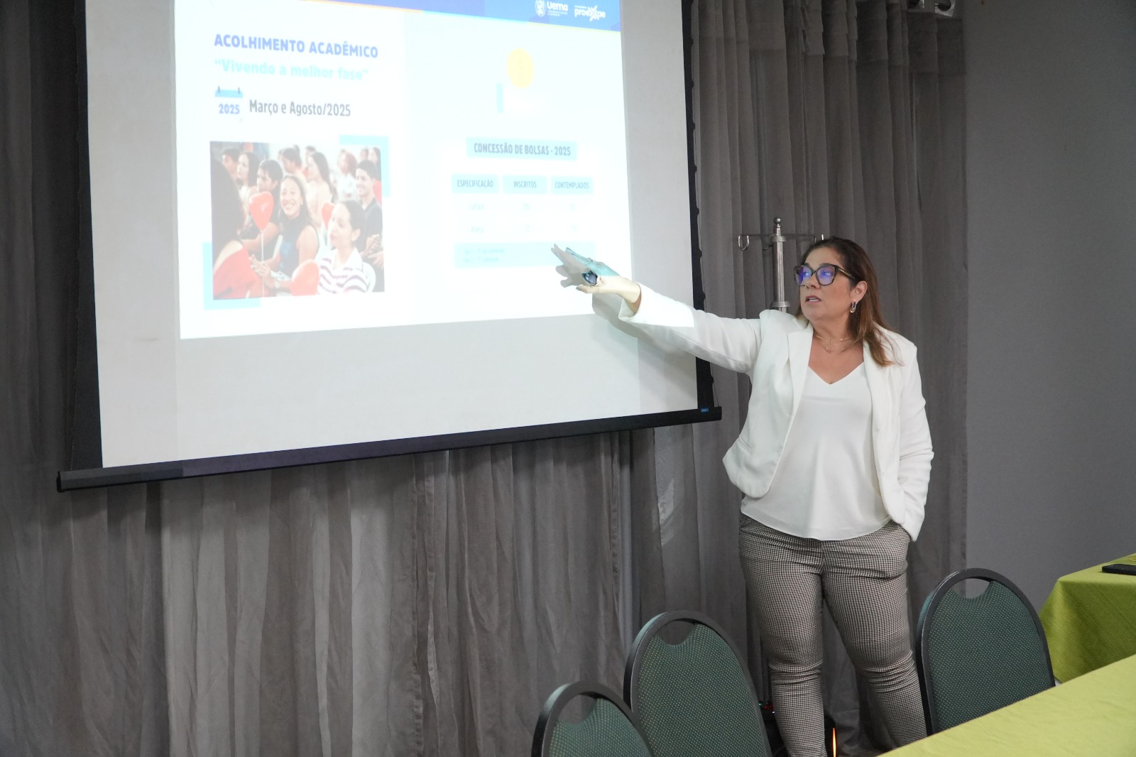 Durante a programação, a pró-reitora de Extensão e Assuntos Estudantis, professora Ilka Serra, apresentou o balanço geral das atividades executadas pela Proexae em 2025. A reunião de gestores se configurou como um espaço fundamental para o alinhamento institucional e a avaliação das ações desenvolvidas, possibilitando a análise dos resultados alcançados no âmbito da universidade.