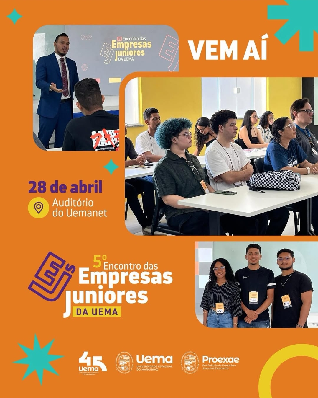 A Universidade Estadual do Maranhão (Uema), por meio da Pró-Reitoria de Extensão e Assuntos Estudantis (Proexae) e da Coordenação de Atividades Extracurriculares, promoverá, no dia 28 de abril, o 5º Encontro das Empresas Juniores da Uema. O evento será realizado no auditório da Uemanet, no campus Paulo VI, em São Luís.